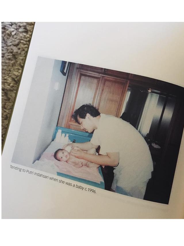 1. Putri Tanjung ketika masih bayi bersama ayahnya. Tampak sang ayah begitu telaten mengurus putrinya ya.