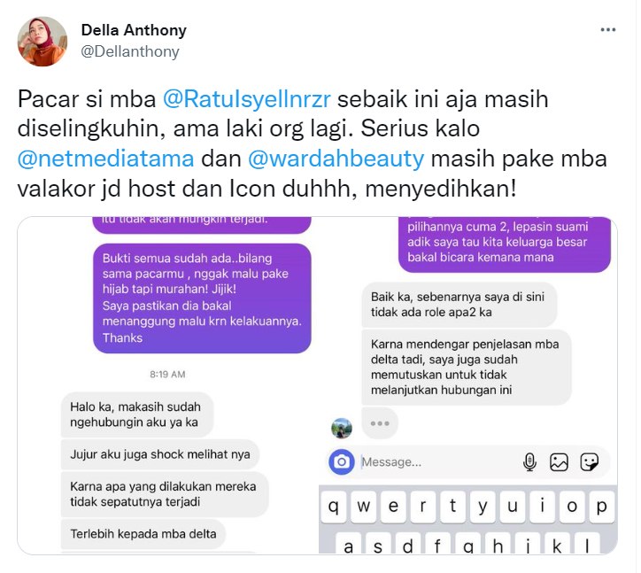 Hal ini diungkapkannya dalam cuitan lain yang diunggah. Della mencoba menghubungi pacar Ratu Isyell melalui pesan Instagram tentang hal yang tengah viral belakangan ini.