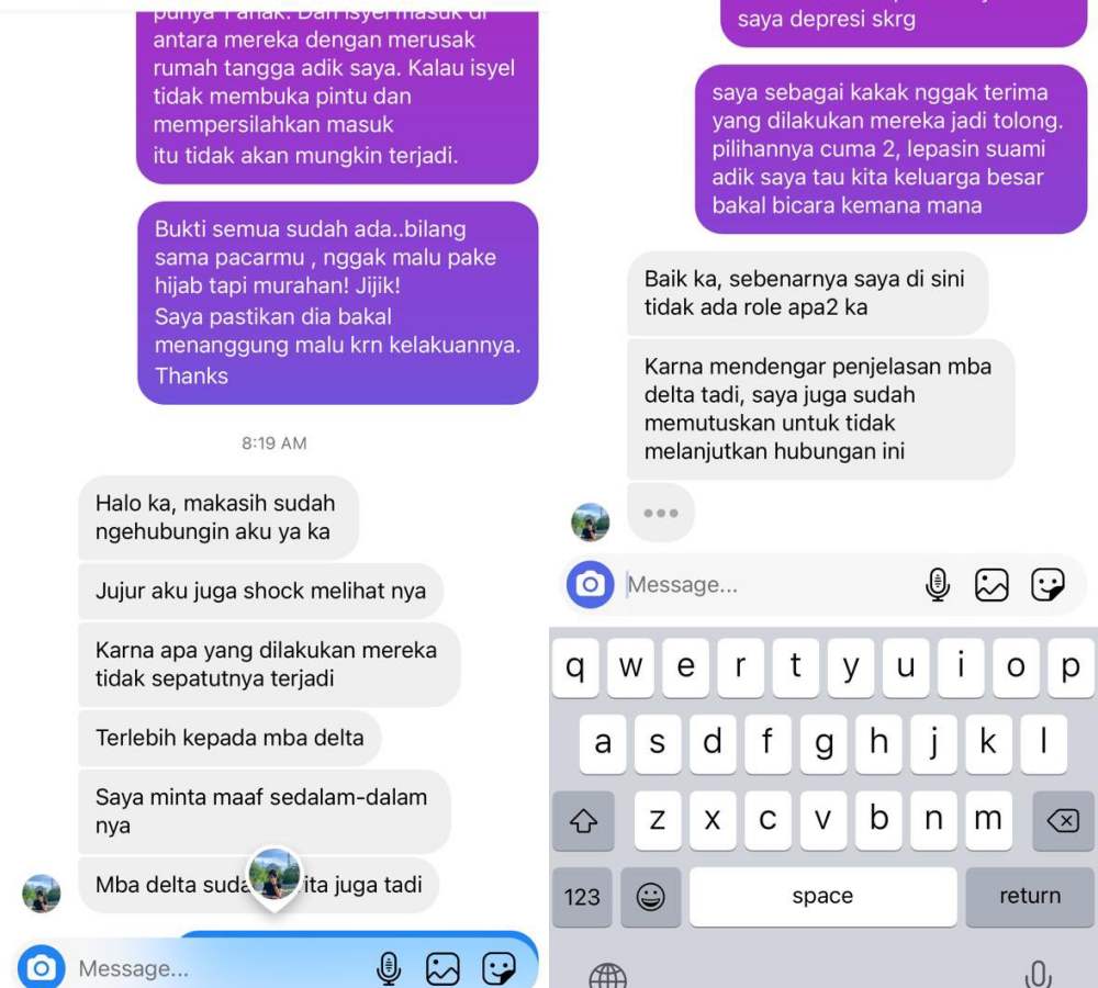 Istri sah yang bernama Delta Putri ini mengungkapkan bahwa presenter dan model ini telah masuk menjadi orang ketiga di rumah tangganya. Tak terima sang suami diduga berselingkuh dengan Ratu Isyell, Delta pun membongkar semuanya melalui media sosial.