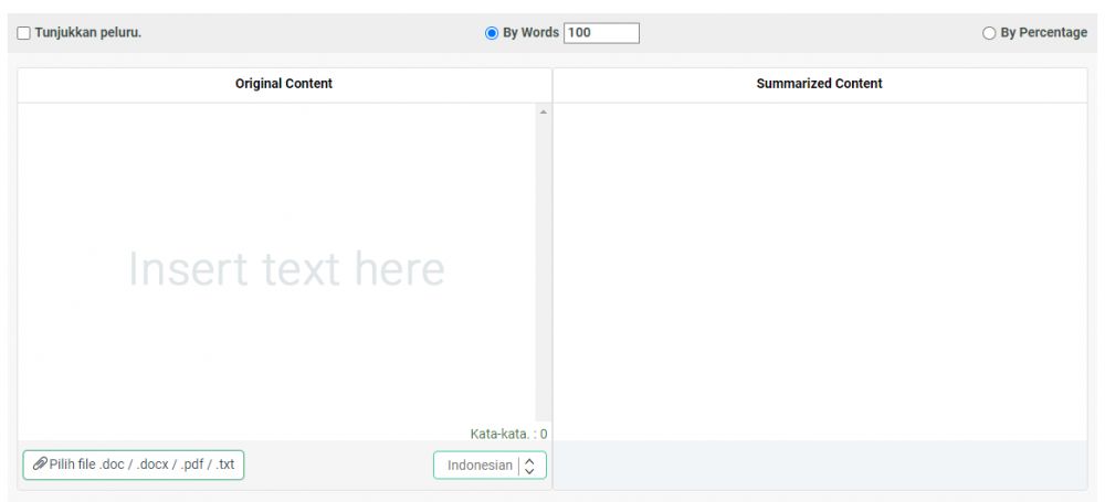 Website ini merupakan yang paling sederhana dari segi tampilan dan penggunaan. Selain itu kalian juga bisa memilih persentase rangkuman yang kalian inginkan pada website ini.