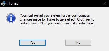12. Setelah kalian klik Finish, maka akan ada opsi untuk me-restart laptop kalian sebelum menggunakan Itunes. Kalian dapat klik Yes jika ingin langsung me-restart.
