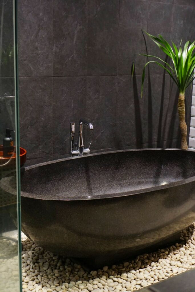 Kamar mandinya juga tersedia sebagai tempat berendam para atlet agar bisa melepas lelah setelah seharian melatih ketangkasan dan kemampuan mereka. Di bawah bathub juga terdapat batu kerikil yang membuat kesan alami semakin terasa.