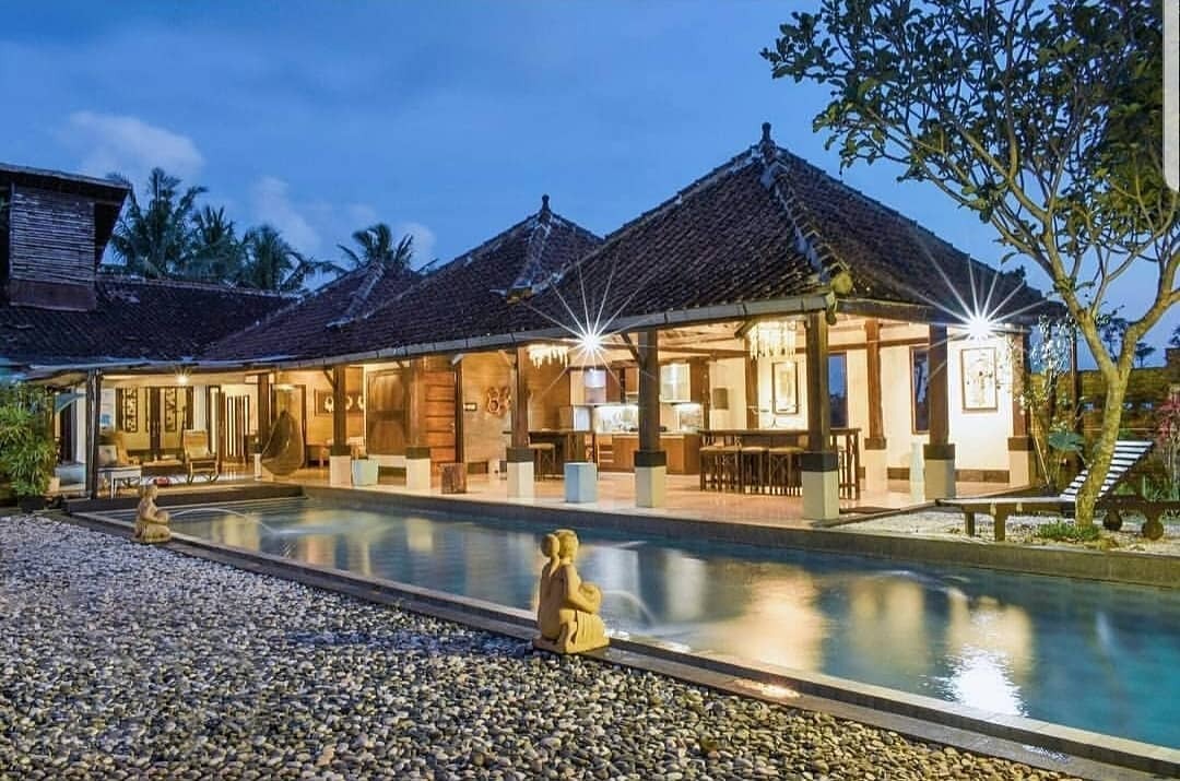 Ke sebelah selatan kota Jogja, tepatnya di daerah Kasihan, Bantul kamu bisa menemukan villa atau penginapan dengan suasana pedesaan yang tenang serta asri. Desain penginapannya berupa bangunan joglo klasik, sementara tersedia juga private pool dengan pemandangan hamparan sawah.