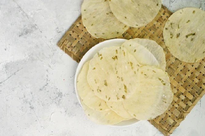 Camilan ini diolah denganadonan tepung bercampur rempah-rempah, ketumbar, garam, kencur, kunyit, kemiri, serta potongan kucai. Tekstur krenyesnya membuat hidangan ini wajib dibawa pulang.